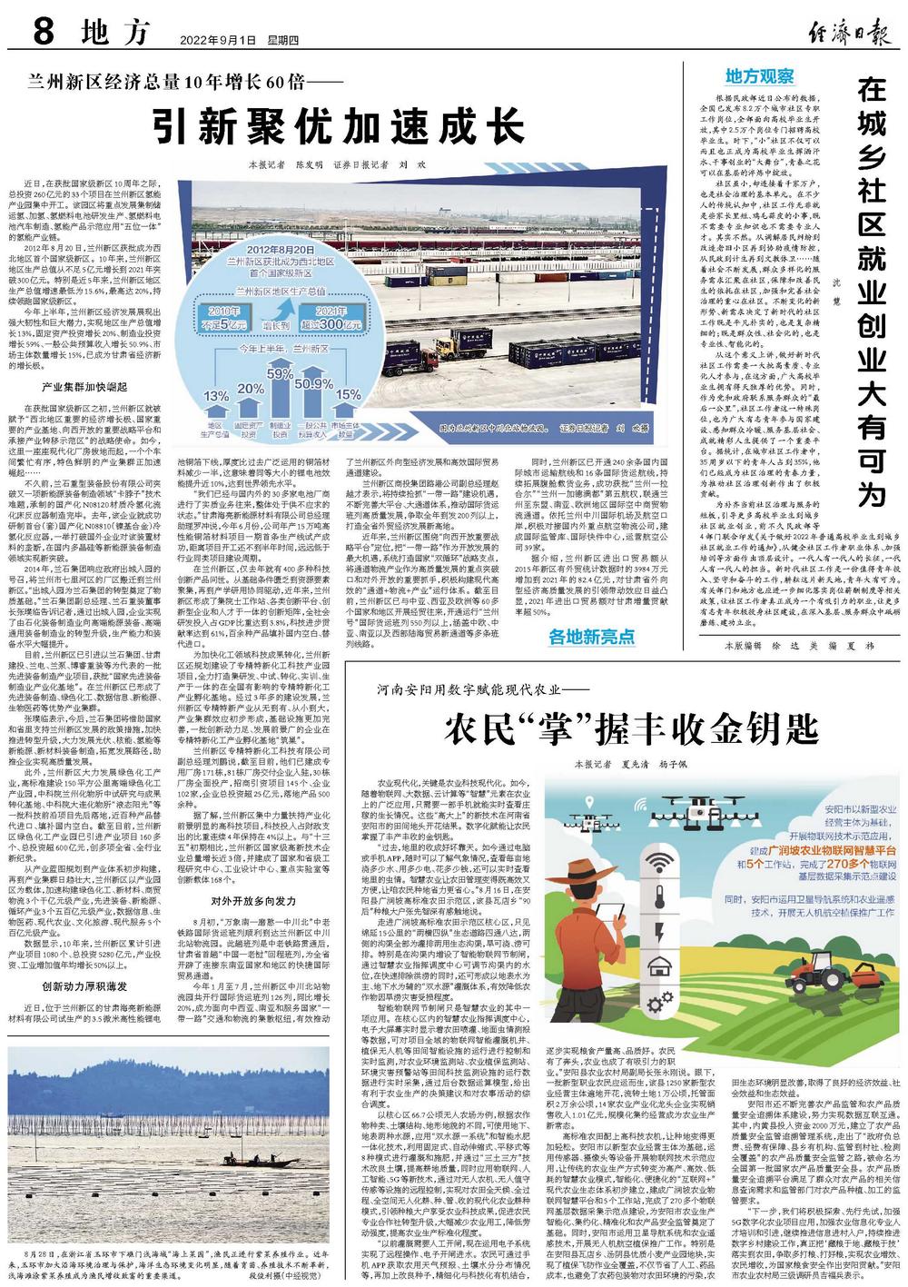 “以前灌溉需要人工开闸,现在运用电子系统实现了远程操作、电子开闸进水。农民可通过手机APP获取农用天气预报、土壤水分分布情况等,再加上改良种子,精细化与科技化有机结合,逐步实现粮食产量高、品质好。农民有了奔头,农业也成了有吸引力的职业。”安阳县农业农村局副局长张永刚说。眼下,一批新型职业农民应运而生,该县1250家新型农业经营主体遍地开花,流转土地1万公顷,托管面积2万余公顷,14家农业产业化龙头企业实现销售收入1.01亿元,规模化集约经营成为农业生产新常态。
