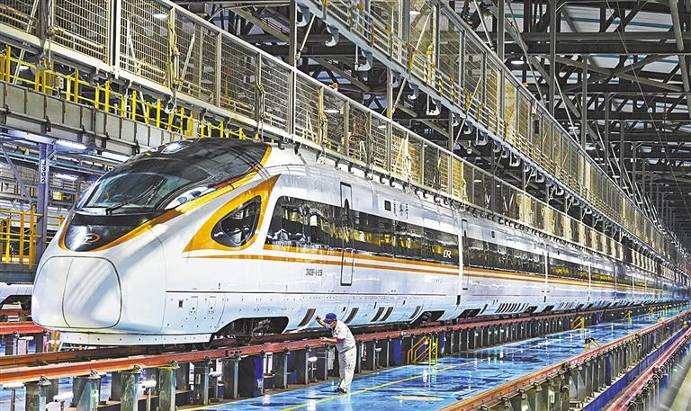 9月1日凌晨,郑州东动车所检修库内,机械师在对复兴号动车组列车进行走行部设备检查。暑运期间,中国铁路郑州局集团有限公司发挥河南高铁成网优势,加大动车组列车开行密度,62天累计上线动车组列车6372标准组。王 玮摄(中经视觉)