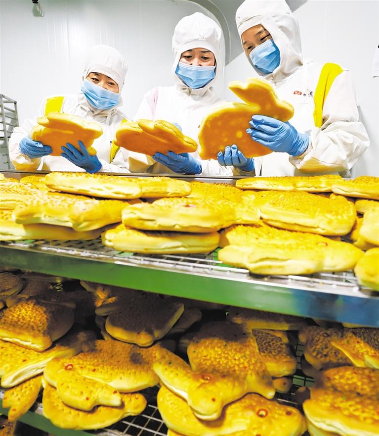 九月一日,甘肃省张掖市甘州区新乐食坊内,质检人员在检查烤制好的“土月饼”质量。中秋节即将来临,当地企业加班加点生产,满足消费者对传统应节食品的需求。王 将摄(中经视觉)