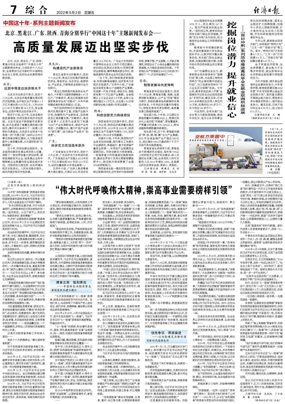 近日,北京、黑龙江、广东、陕西、青海分别在当地举行“中国这十年”主题新闻发布会,介绍党的十八大以来,全面贯彻习近平新时代中国特色社会主义思想,经济社会发展取得的新成就。