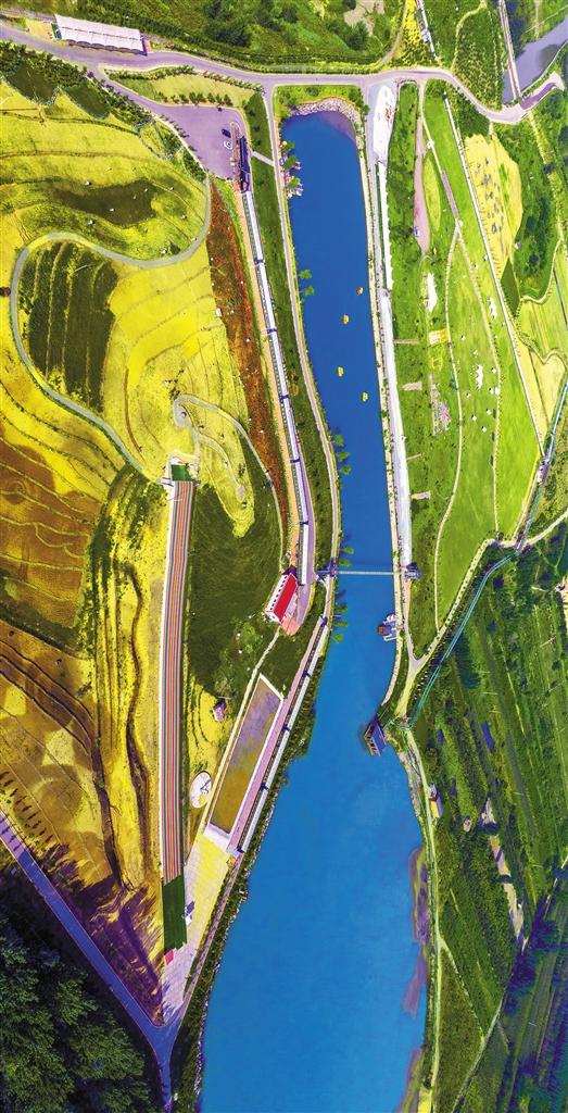 ▼北京市通州区五河交汇水路纵横。近年来,通过水岸同治、改善水生态结构等措施,五河交汇处水清岸绿、河畅景美。周宇杰摄(中经视觉)