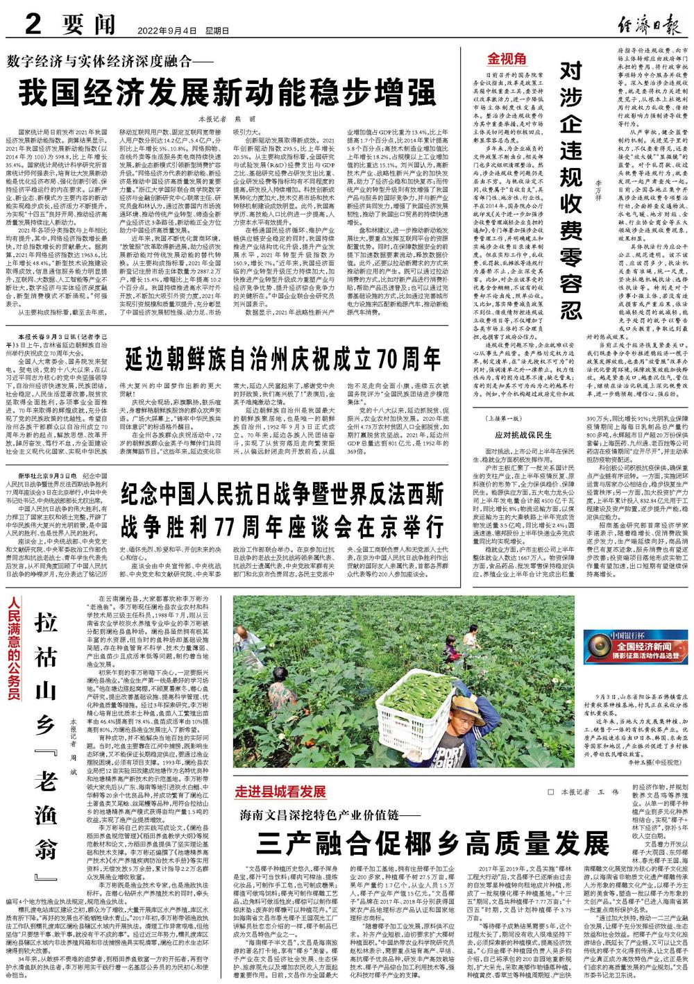 “随着椰子加工业发展,原料供不应求。补齐产业短板,迫切要求扩大椰树种植面积。”中国热带农业科学院研究员赵松林表示,需要重点培育高产、早结、高抗椰子优良品种,研发丰产高效栽培技术、椰子产品综合加工利用技术等,强化科技对椰子产业的支撑。