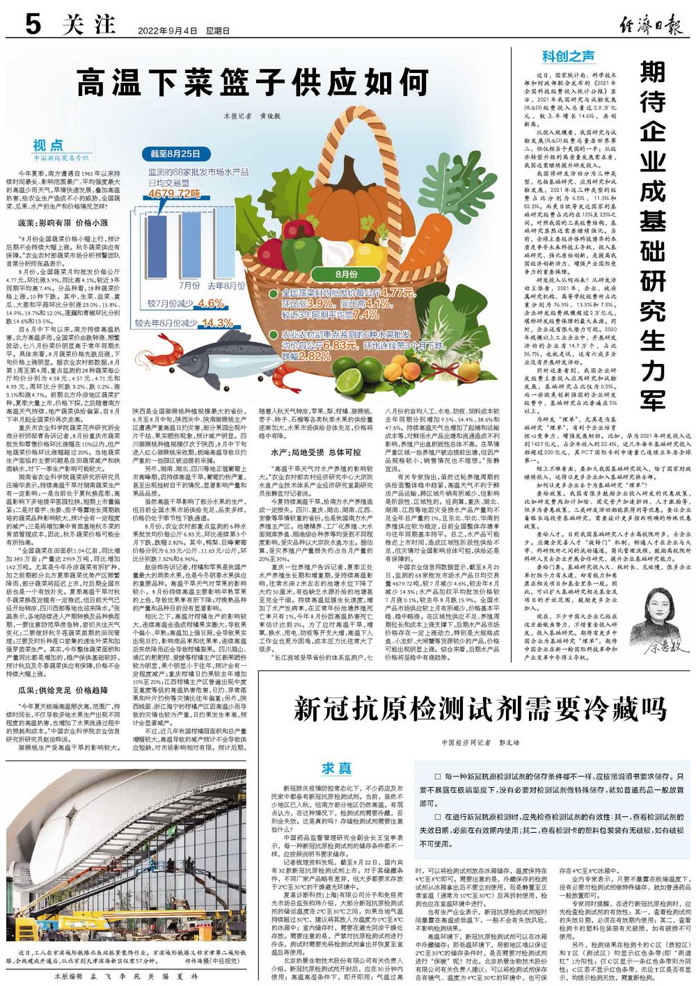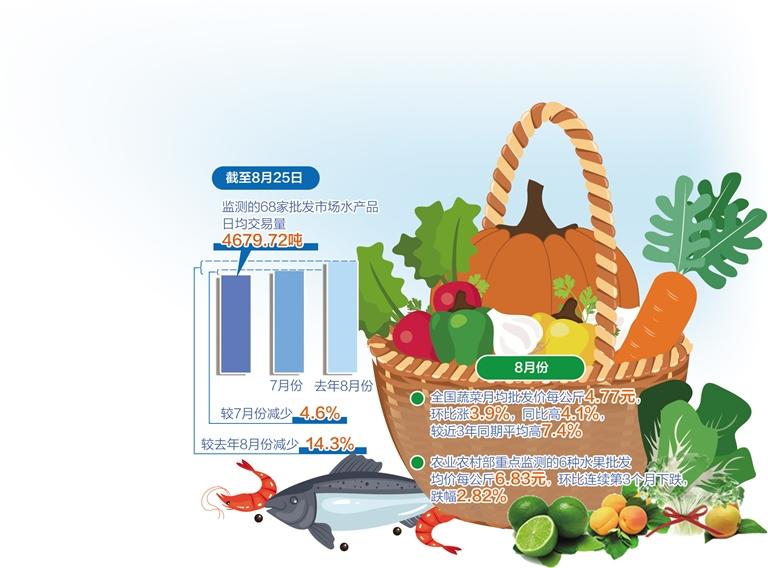 今年夏季,南方遭遇自1961年以来持续时间最长、影响范围最广、平均强度最大的高温少雨天气,旱情快速发展,叠加高温热害,给农业生产造成不小的威胁,全国蔬菜、瓜果、水产的生产和价格情况怎样?