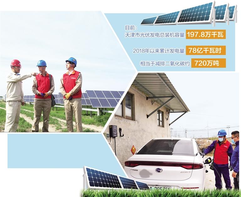 目前,天津市光伏发电总装机容量197.8万千瓦,2018年以来累计发电量78亿千瓦时,相当于减排二氧化碳约720万吨。