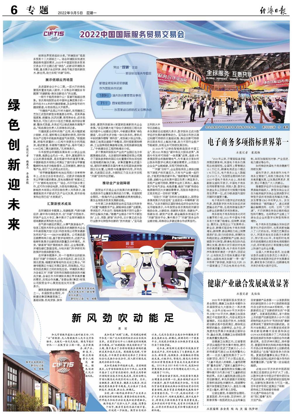 2022年中国国际服务贸易交易会期间,健康卫生服务专题作为本届服贸会九大板块之一再次亮相。从去年占地6600平方米到今年占地7700平方米,健康卫生服务展区不但面积更大,内容也更加丰富精彩。无论是医疗技术、生物医药创新还是中医药展区,都体现出鲜明的融合、创新特征,全方位、多角度向世界展示我国通过国际合作、融合发展,在健康卫生领域取得的高质量发展成果。