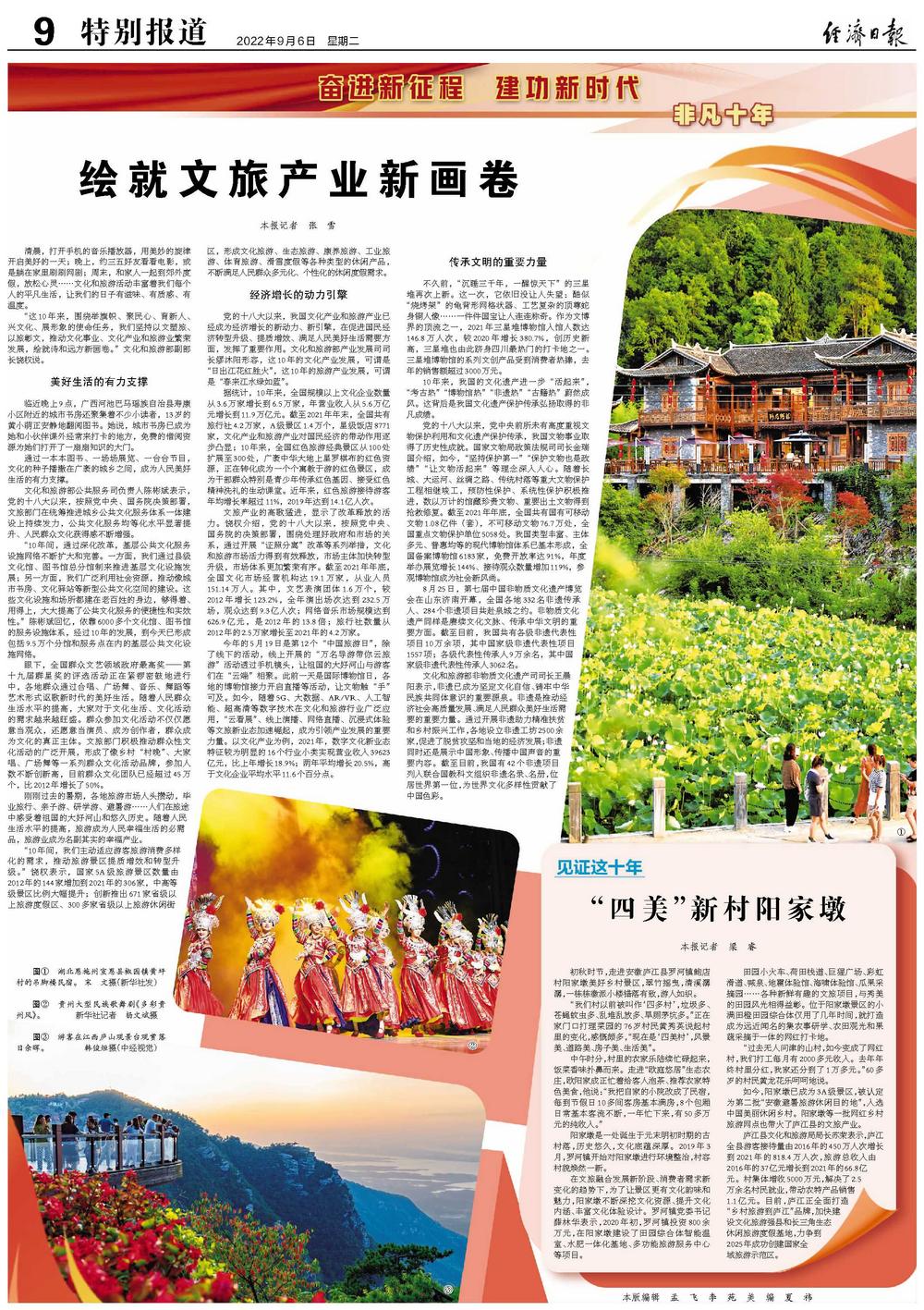 党的十八大以来,我国文化产业和旅游产业已经成为经济增长的新动力、新引擎,在促进国民经济转型升级、提质增效、满足人民美好生活需要方面,发挥了重要作用。文化和旅游部产业发展司司长缪沐阳形容,这10年的文化产业发展,可谓是“日出江花红胜火”,这10年的旅游产业发展,可谓是“春来江水绿如蓝”。