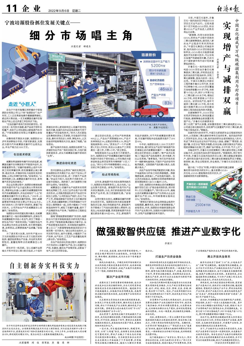“这些活塞杆是我们投资的新项目。经过攻克一系列技术难题,新产品将于明年实现量产,有助于公司加速抢占新能源汽车市场。”宁波培源股份有限公司董事长俞培君说。