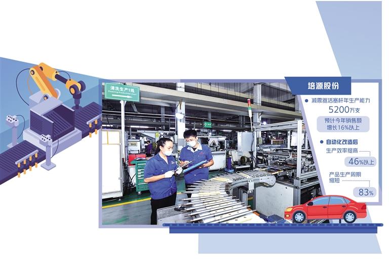 智能制造助力企业竞争力不断提升。如今,培源股份生产的减震器活塞杆在国际和国内市场处于领先地位,公司发展成为国家级制造业单项冠军和专精特新“小巨人”企业。“预计公司今年销售额增长16%以上,目前订单已接到2027年。”俞培君说。