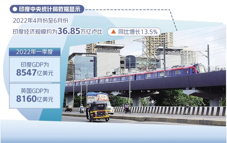 印度中央统计局8月31日公布的数据显示,2022年4月份至6月份,印度经济规模约为36.85万亿卢比,同比增长13.5%,外界普遍认为这一数据凸显出印度经济强劲的复苏趋势。