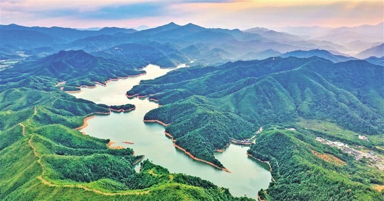 9月6日,航拍江西省全南县黄云水库,青山绿水景美如画。该水库地处桃江左岸支流,坝址以上控制流域面积93.7平方公里,兼具灌溉、养殖、发电、生态涵养功能。近年来,当地常态化开展水系保洁、水质监测,水库综合功能得以充分发挥。