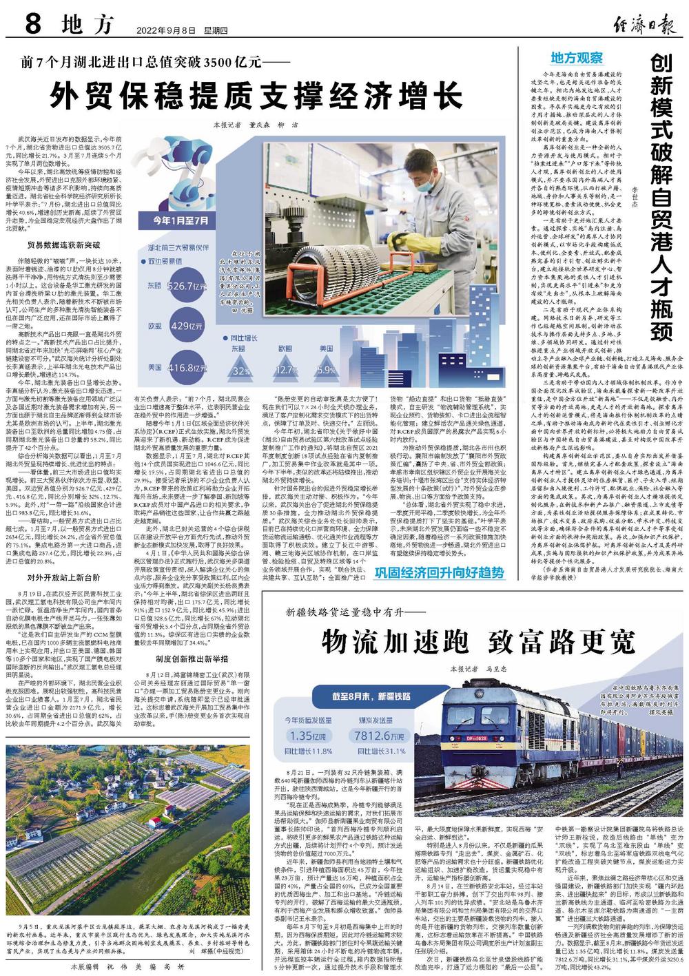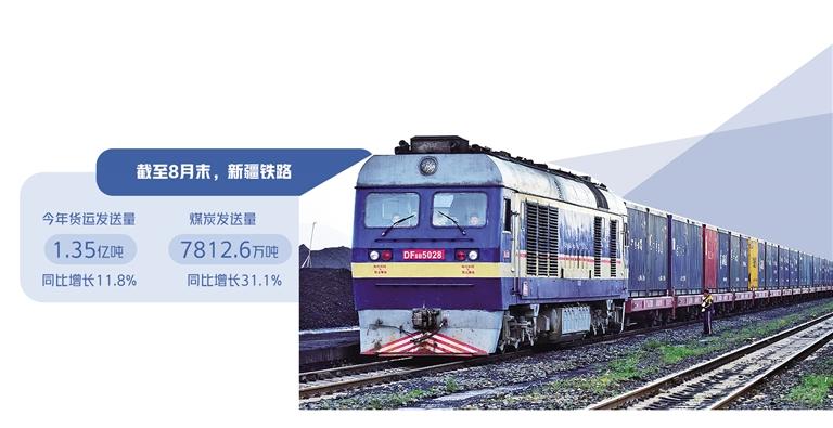 一列列满载货物向前奔跑的列车,为保障货运畅通及新疆经济社会高质量发展增添了新的活力。数据显示,截至8月末,新疆铁路今年货运发送量已达1.35亿吨,同比增长11.8%。煤炭发送量7812.6万吨,同比增长31.1%,其中煤炭外运3230.6万吨,同比增长43.2%。