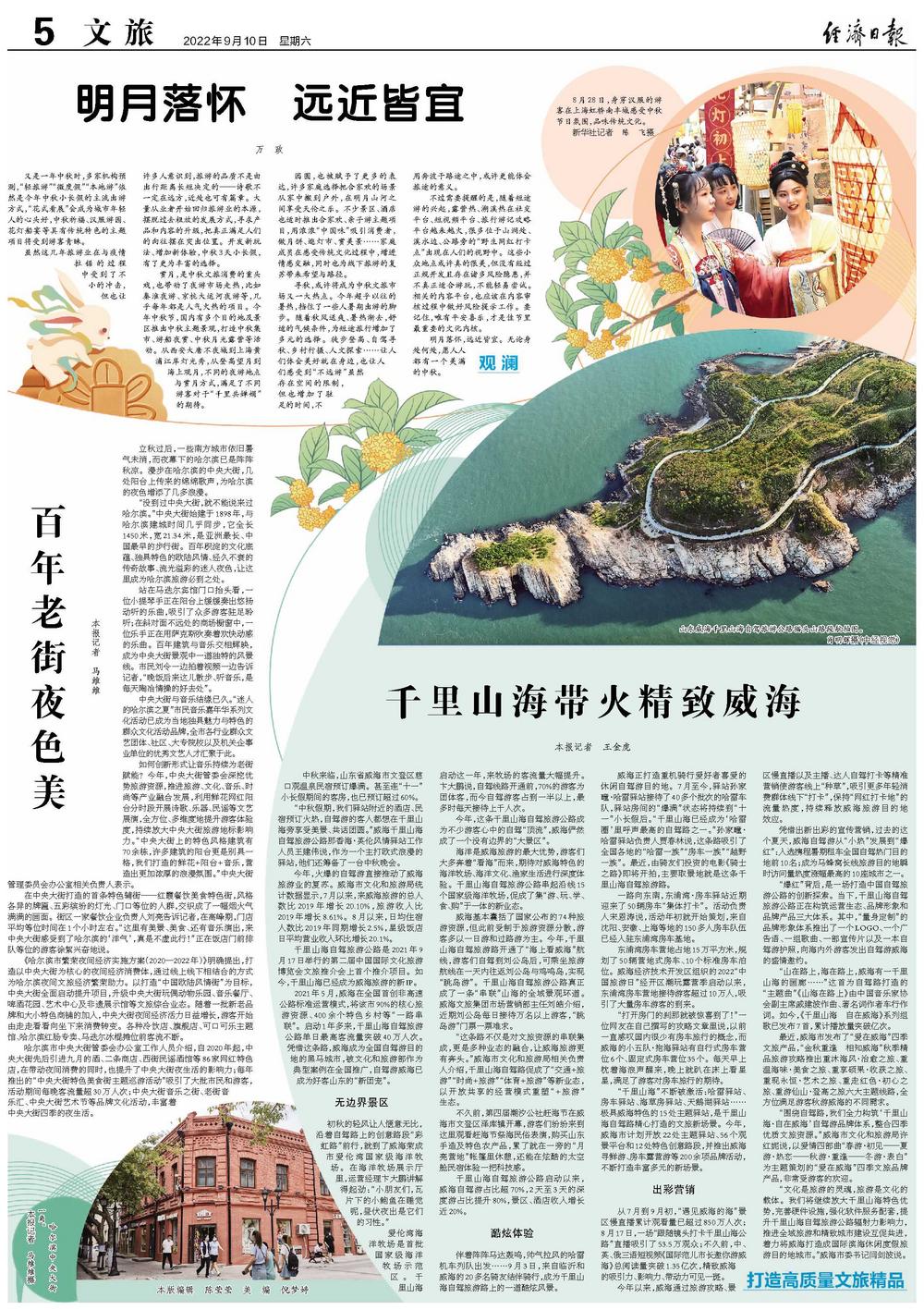 “中秋假期,我们驿站附近的酒店、民宿预订火热,自驾游的客人都想在千里山海旁享受美景、共话团圆。”威海千里山海自驾旅游公路那香海·英伦风情驿站工作人员王建伟说,作为一个主打欧式浪漫的驿站,他们还筹备了一台中秋晚会。