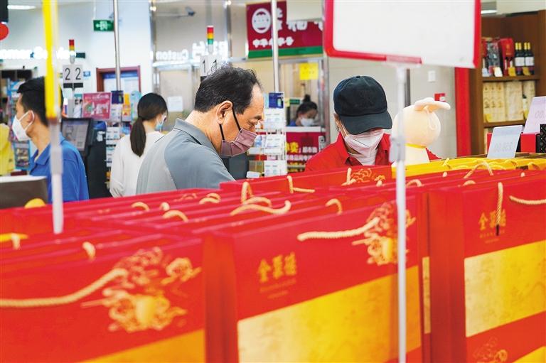 ▲9月9日,北京一家超市内,顾客在挑选月饼。本报记者 陶天添摄