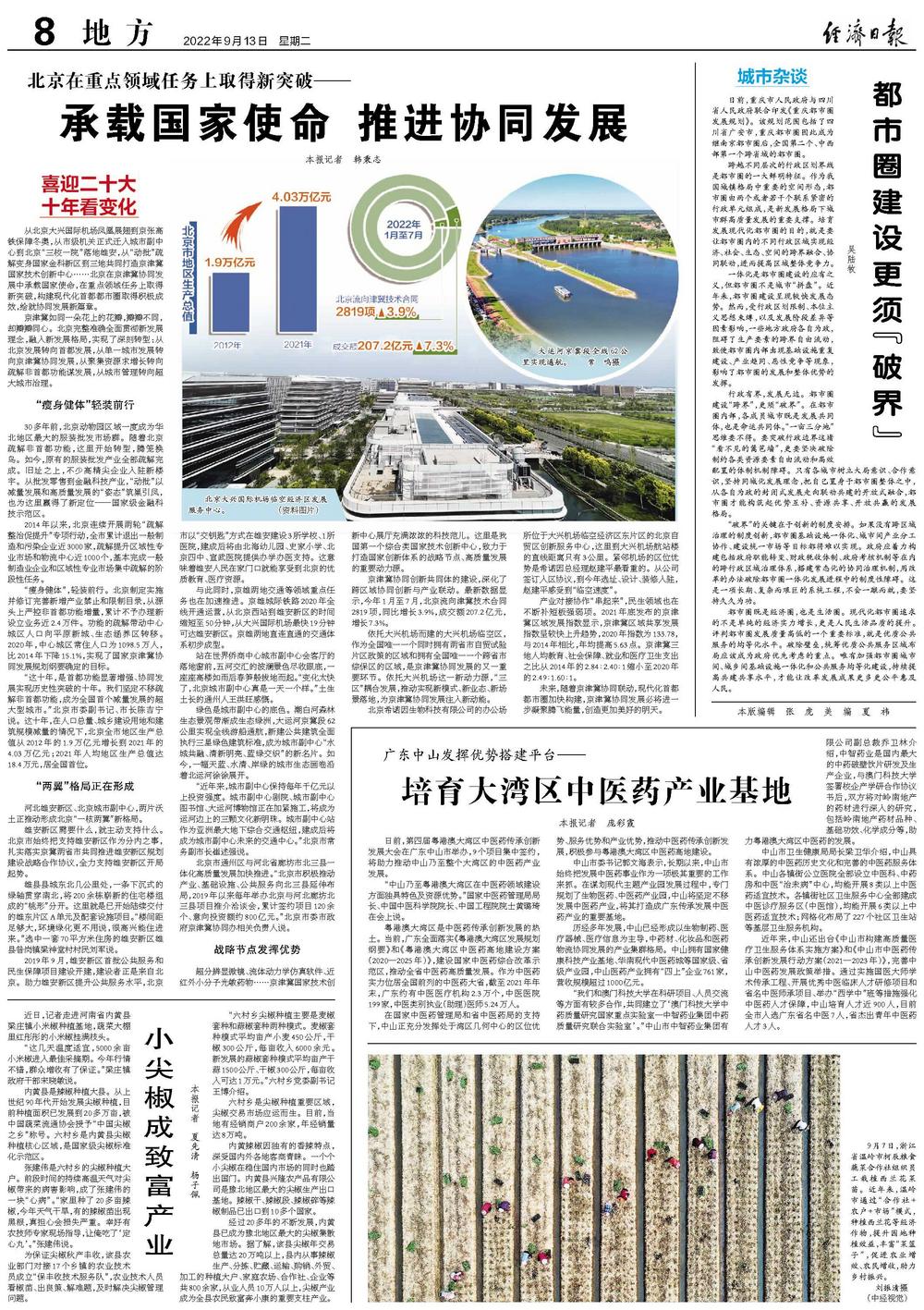 从北京大兴国际机场凤凰展翅到京张高铁保障冬奥,从市级机关正式迁入城市副中心到北京“三校一院”落地雄安,从“动批”疏解变身国家金科新区到三地共同打造京津冀国家技术创新中心……北京在京津冀协同发展中承载国家使命,在重点领域任务上取得新突破,构建现代化首都都市圈取得积极成效,绘就协同发展新篇章。
