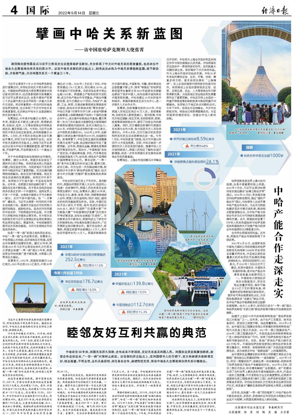 近年来,在共建“一带一路”项目框架下,中哈产能合作不断走深走实,多层次、多领域的合作项目成为两国合作的金名片与招牌,为两国发展持续注入新的动能。