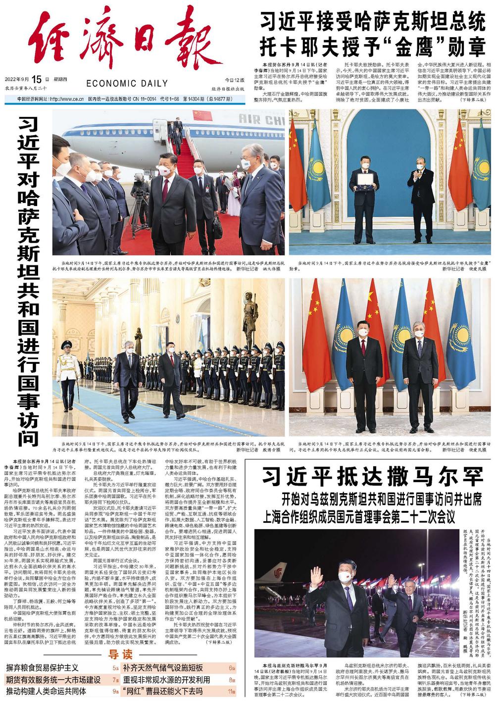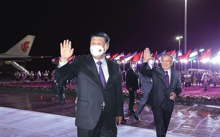 本报乌兹别克斯坦撒马尔罕9月14日讯(记者赖毅)当地时间9月14日晚,国家主席习近平乘专机抵达撒马尔罕,开始对乌兹别克斯坦共和国进行国事访问并出席上海合作组织成员国元首理事会第二十二次会议。