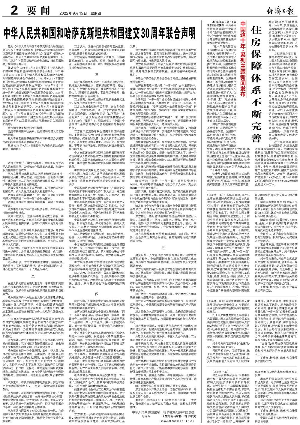 两国元首签署并发表《中华人民共和国和哈萨克斯坦共和国建交30周年联合声明》,宣布为中哈构建世代友好、高度互信、休戚与共的命运共同体目标和愿景而努力。