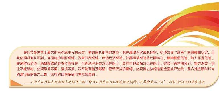 勇于自我革命是中国共产党区别于其他政党的显著标志。新时代新征程,必须找准全面从严治党的着力点,深化党的自我革命,不断破解前进道路上的新问题新挑战,确保党不变质、不变色、不变味,把党建设得更加坚强有力。