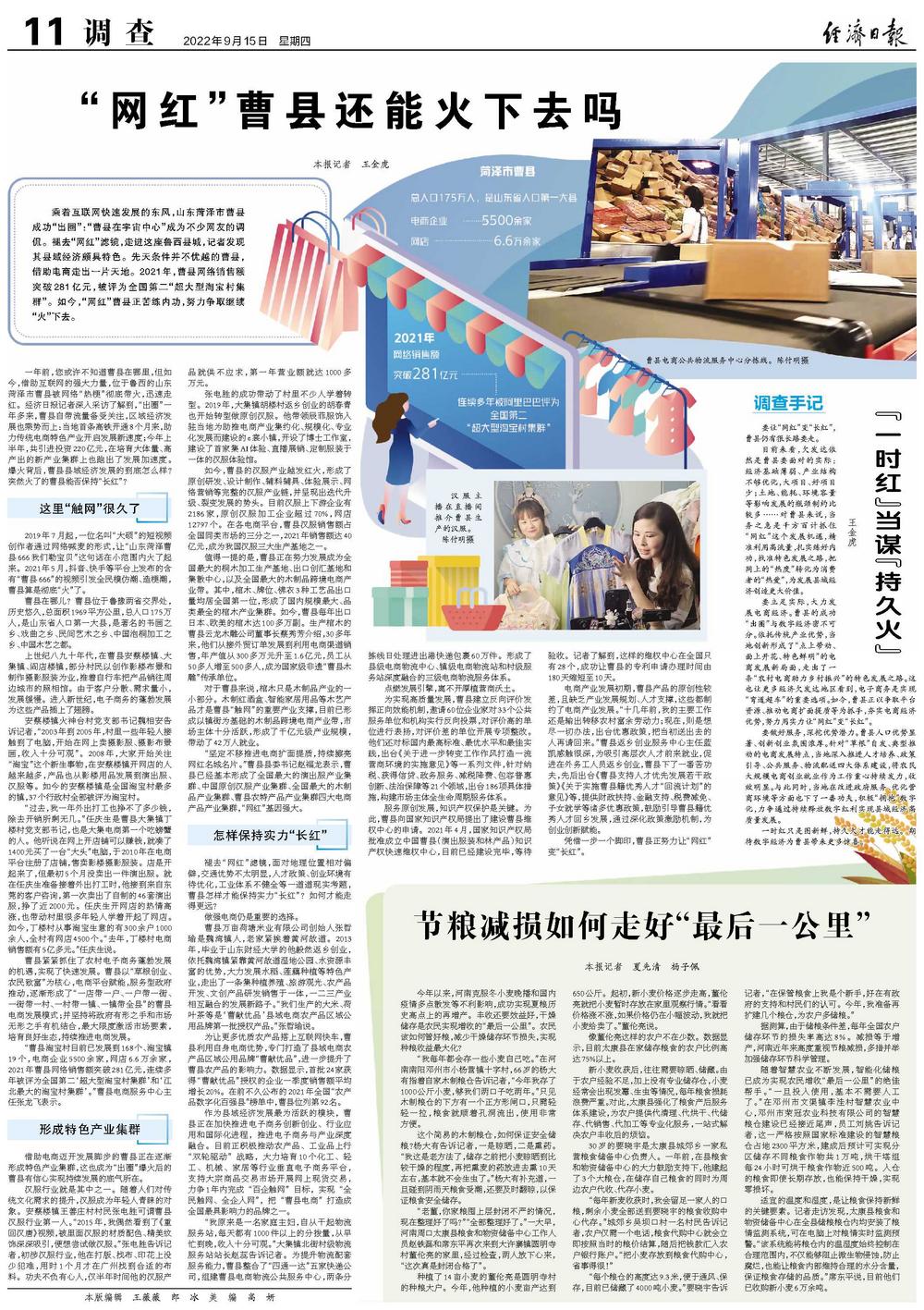 乘着互联网快速发展的东风,山东菏泽市曹县成功“出圈”:“曹县在宇宙中心”成为不少网友的调侃。褪去“网红”滤镜,走进这座鲁西县城,记者发现其县域经济颇具特色。先天条件并不优越的曹县,借助电商走出一片天地。2021年,曹县网络销售额突破281亿元,被评为全国第二“超大型淘宝村集群”。如今,“网红”曹县正苦练内功,努力争取继续“火”下去。