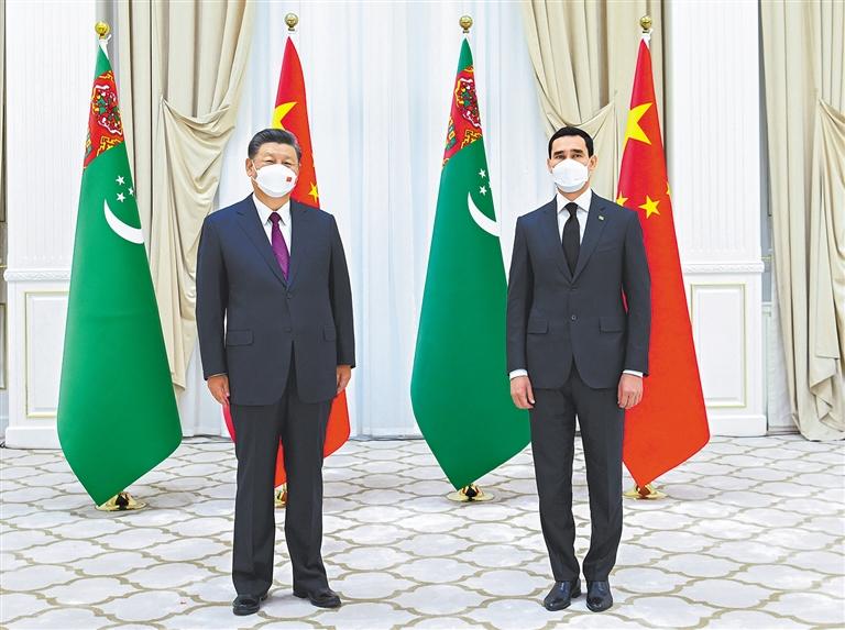 习近平强调,双方要做大两国天然气合作的体量和规模,为两国发展振兴注入新动力。要加快推进非资源领域合作,推进共建“一带一路”倡议同土方“复兴丝绸之路”战略对接。尽早落实互设文化中心,为两国人文交流搭建新平台。中方愿早日在土库曼斯坦设立鲁班工坊,同土方继续加强抗疫合作。中方愿同土方加强“中国+中亚五国”会晤机制内合作,落实全球发展倡议和全球安全倡议,密切国际协作,维护广大发展中国家共同利益,为促进世界和平与发展作出贡献。