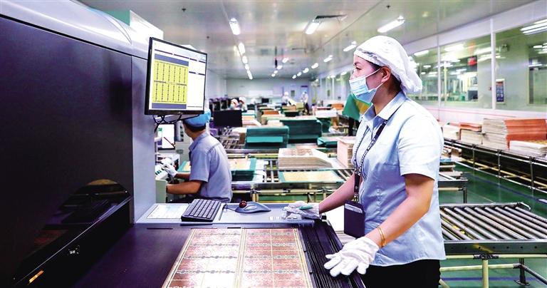 位于江西省吉水县工业园区的江西景旺精密电路有限公司,今年1月份至8月份,实现产值21亿元,同比增长11%。近年来,该公司加大科技创新、设备升级改造力度,推动企业提质增效,实现高质量发展,共获得国家发明专利95项、国家实用新型专利72项。图为公司员工在自动化生产线上忙碌。廖 敏摄(中经视觉)