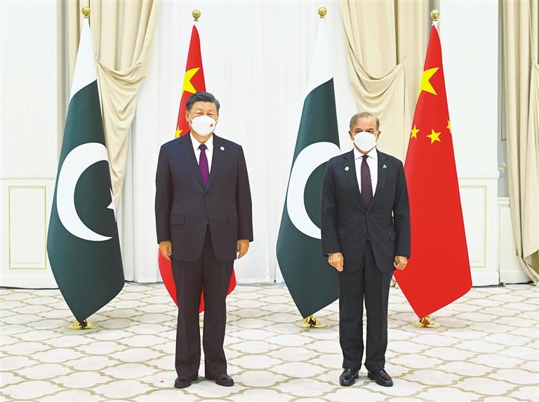 习近平指出,中国和巴基斯坦山水相邻、命运相连,两国历来患难与共、守望相助。无论国际风云如何变幻,中国和巴基斯坦都是彼此值得信赖的战略伙伴。中方愿同巴方一道,推动两国全天候战略合作伙伴关系发展,加快构建新时代更加紧密的中巴命运共同体。