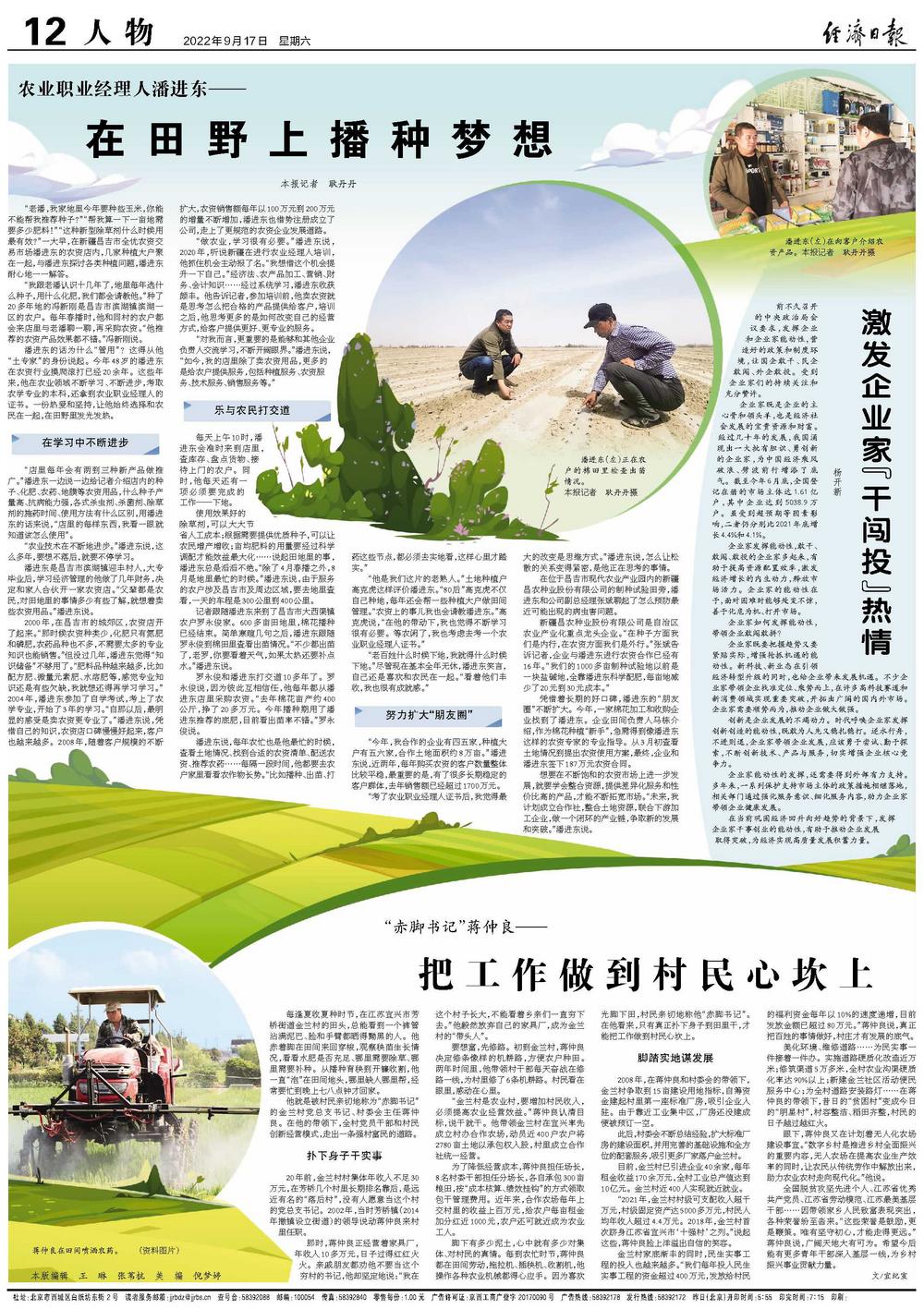 “老百姓什么时候下地,我就得什么时候下地。”尽管现在基本全年无休,潘进东笑言,自己还是喜欢和农民在一起。“看着他们丰收,我也很有成就感。”