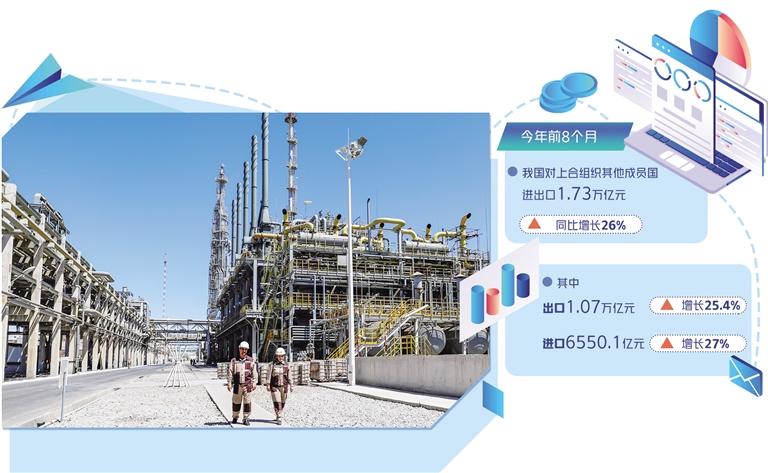 谈及上合组织成员国之间的经贸合作,陈玉荣表示,上合组织国家经济互补性强,经贸合作潜力巨大。例如,在基础设施领域,上合国家在道路互联互通方面的合作成果十分突出。中哈实现了公路、铁路、航空、油气管道的互联互通。中俄同江—下列宁斯科耶铁路桥、中俄黑河—布拉戈维申斯克公路桥、中吉乌国际公路的建成通车,加快了成员国之间的贸易往来。此外,近年来,上合组织产业园区、产能合作发展迅速,中哈札纳塔斯风电场、中哈图尔古松水电站已投产发电。跨境电商、远程医疗、远程会展、远程教育、无线支付、智慧物流和智能制造等新兴经济业态也展现出极大的经济合作潜能。
