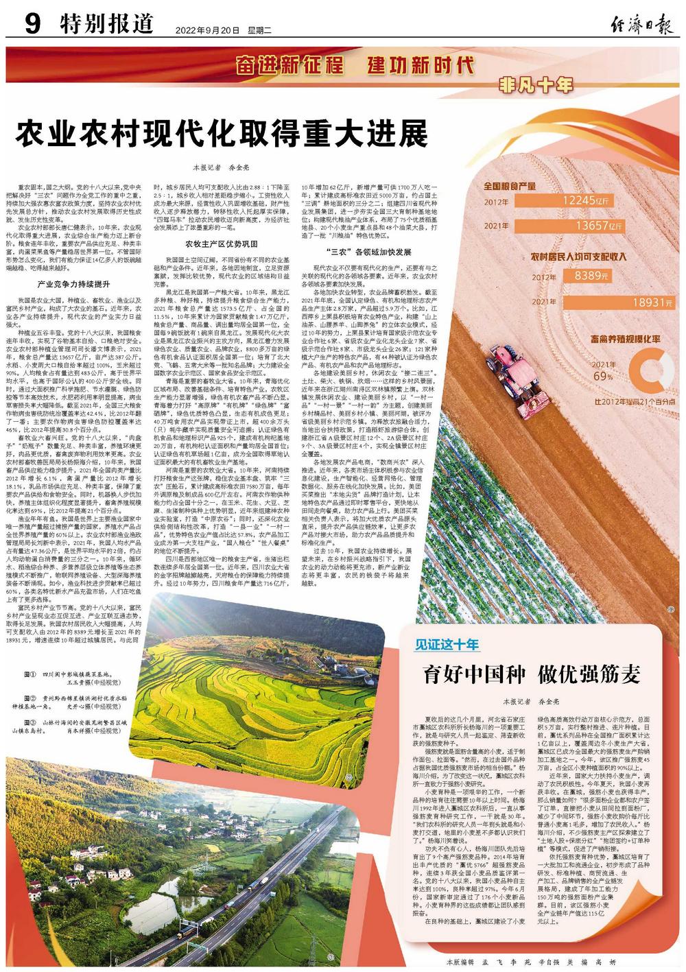 四川是西部地区唯一的粮食主产省,生猪出栏数连续多年居全国第一位。近年来,四川农业大省的金字招牌越擦越亮,天府粮仓的保障能力持续提升。经过10年努力,四川粮食年产量达716亿斤,10年增加62亿斤,新增产量可供1700万人吃一年;累计建成高标准农田近5000万亩,约占国土“三调”耕地面积的三分之二;组建四川省现代种业发展集团,进一步夯实全国三大育制种基地地位;构建现代粮油产业体系,布局了75个优质稻基地县、20个小麦生产重点县和48个油菜大县,打造了一批“川粮油”特色优势区。