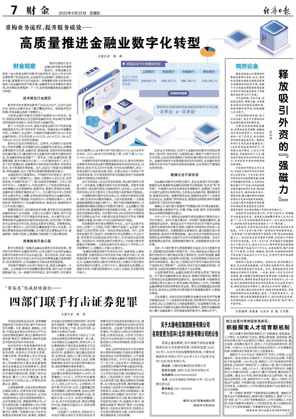 王兆星建议,当前应加快完善数字金融法治体系并严格遵守数据安全法、个人信息保护法等法规,同时要牢牢守住风险安全底线,防止以创新的名义突破监管规则。“在监管模式方面,加快探索适合中国数字金融发展的新监管模式,使数字金融能够纳入整个金融监管中,同时提高监管的数字化、智能化水平”。