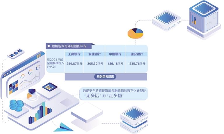到了10年后的2022年,国有大型商业银行对于科技的重视程度甚至可以用“前所未有”来形容。根据各家今年披露的年报,工商银行、农业银行、中国银行和建设银行在2021年的金融科技投入已分别达到259.87亿元、205.32亿元、186.18亿元和235.76亿元,均创历史新高。
