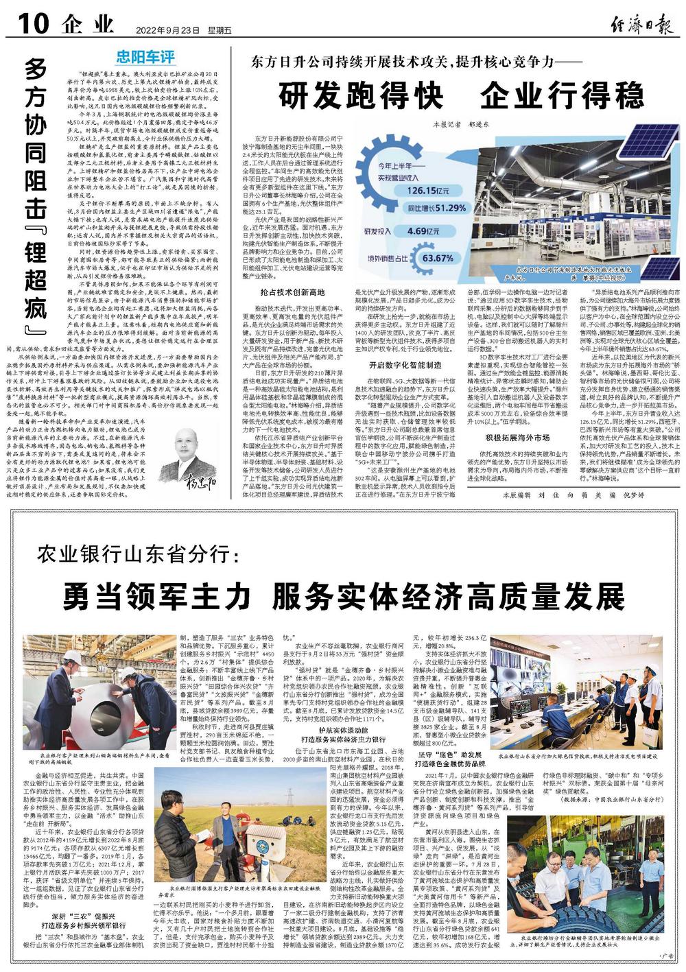 今年上半年,东方日升营业收入达126.15亿元,同比增长51.29%,西班牙、巴西等新兴市场等有重大突破。“公司依托高效光伏产品体系和全球营销体系,加大对研发和工艺的投入,技术上保持领先优势,产品销量不断增长。未来,我们将继续瞄准‘成为全球领先的零碳解决方案供应商’这个目标一直前行。”林海峰说。
