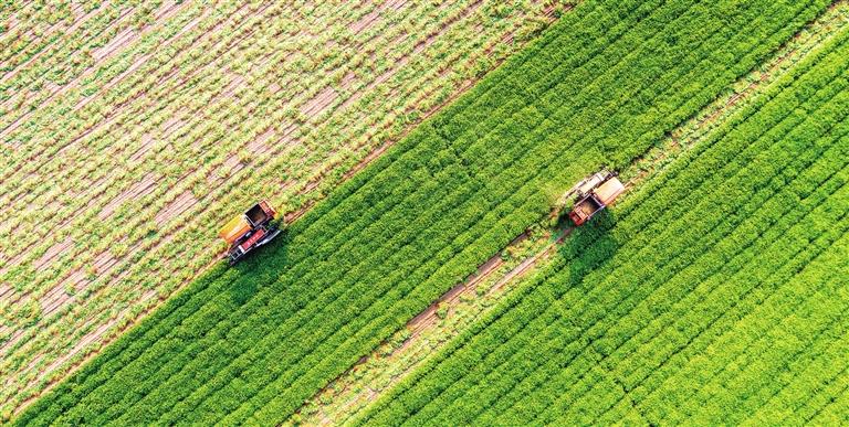 近日,农民在山西省运城市万荣县黄汾滩涂万亩花生基地收获花生。近年来,万荣县以黄河流域万亩优质粮食高产高效基地核心区为依托,建设万亩小麦(玉米)、万亩高粱、万亩水稻、万亩花生4个万亩粮食基地,打造晋南地区万吨粮仓,助力农民增产增收,助推乡村振兴。