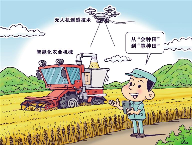 9月23日是中国农民丰收节。当很多人还在脑补农民弯腰弓背、挥汗如雨的农忙画面时,在全国各地的广袤农田里,无人机遥感等科技的应用、农业机械的登场、保姆式耕种管收托管服务的普及等,已经令收获季充满科技风、未来感。科技加速改变农业面貌,为传统农业赋予时代内涵。数字化让农民从“会种田”变成“慧种田”,通过建立农业服务大数据平台,破解农民种粮难题;智能化提升农业生产效率,如今几十名新型职业农民能种上万亩田,粮食损耗率也大大降低;托管式“田保姆”让农民种地更轻松,同时可促进农民增收。用科技赋能农业,中国饭碗将端得更稳。(时 锋)