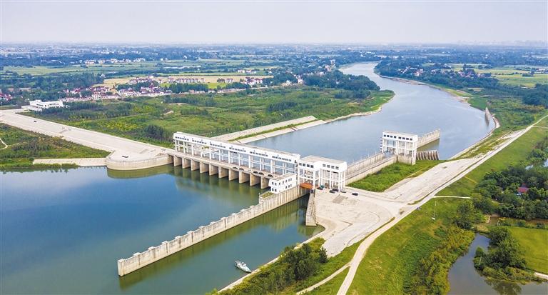9月23日,航拍位于安徽省芜湖市湾沚区红杨镇境内的青弋江分洪道红庙节制闸枢纽工程。
