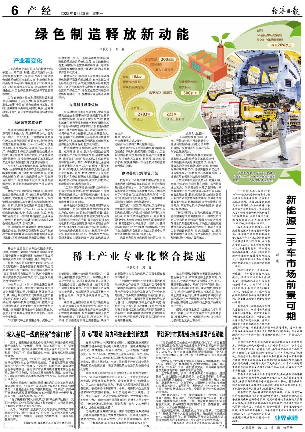 工业和信息化部日前公布的数据显示,截至2021年年底,我国共组织实施了300余项绿色制造重大工程项目,发布了184家绿色制造系统解决方案供应商,制定绿色制造相关标准500多项,培育建设了2783家绿色工厂、223家绿色工业园区、296家绿色供应链企业,对工业绿色低碳转型发挥了重要引领作用。