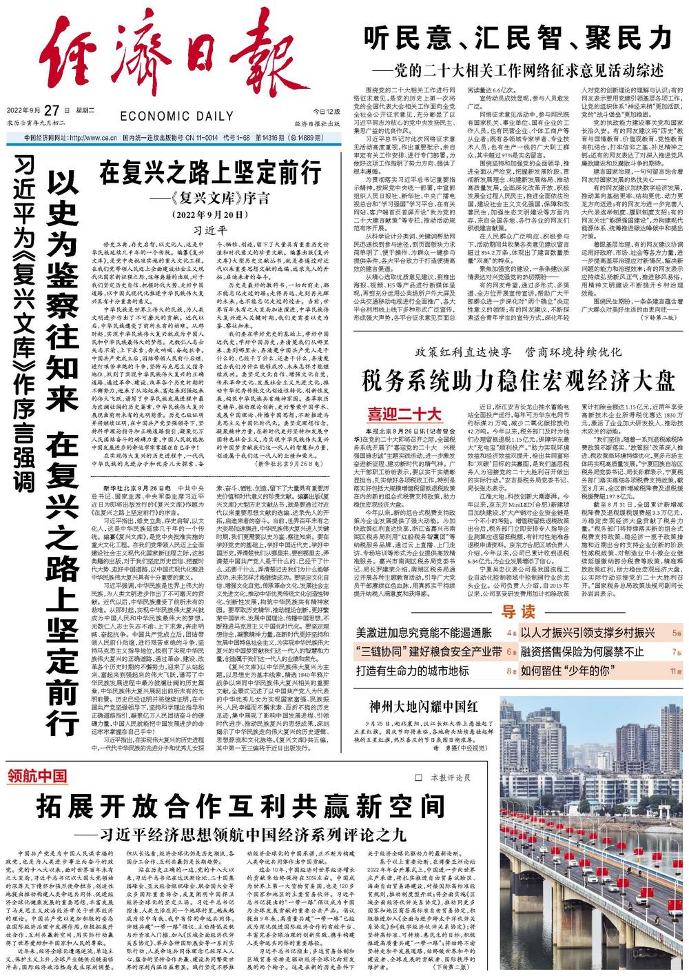 本报北京9月26日讯(记者曾金华)在党的二十大即将召开之际,全国税务系统开展了“喜迎党的二十大 兴税强国铸忠诚”主题实践活动,进一步激发奋进新征程、建功新时代的精气神。广大干部职工纷纷表示,要以实干实绩彰显担当,扎实做好各项税收工作,特别是落实好包括大规模增值税留抵退税政策在内的新的组合式税费支持政策,助力稳住宏观经济大盘。