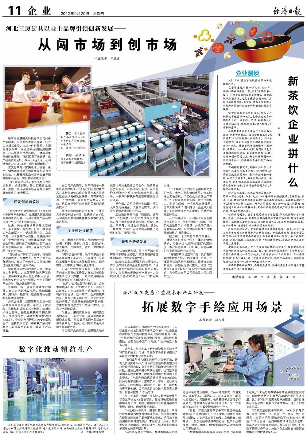 “高端厨具市场空间广阔,我们要抓紧时机转型升级。”韩光辉说,未来,三厦厨具将加快新产品研发,提升自主创新能力,并加强信息化建设,打造“互联网+绿色+智能”铸造行业智能新模式,力争到2025年公司营业收入将达到20亿元。