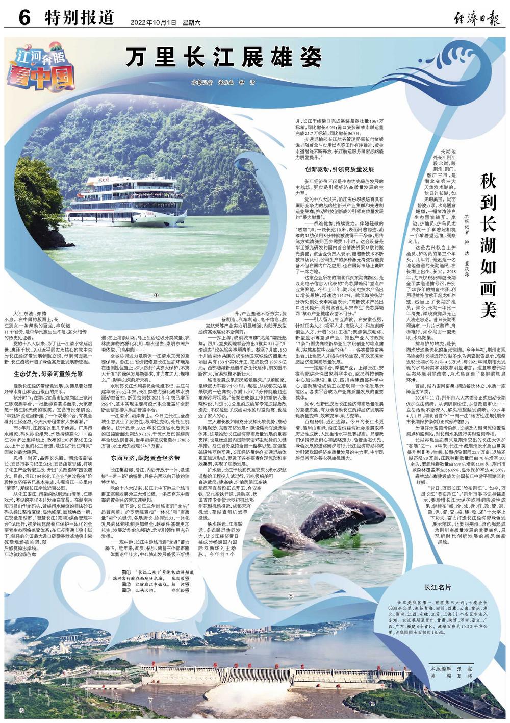 从化工围江、污染绕城到远山滴翠、江豚戏水,类似的变化不只发生在宜昌。在湖南岳阳市君山华龙码头,曾经污水横流的非法砂石码头经过整治复绿、湿地修复,面貌焕然一新;在安徽芜湖市,“智慧长江(芜湖)综合管理平台”试运行,初步构建起长江保护一体化的全要素生态网络监管体系;在江苏南通市狼山脚下,曾经的全国最大进口硫磺集散基地狼山港硫磺堆场被关闭,随后修复腾出岸线,江边筑起绿色廊道;在上海崇明岛,岛上生活垃圾分类减量、农林废弃物资源化利用,潮水退去,崇明东滩芦苇依依、飞鸟翱翔……
