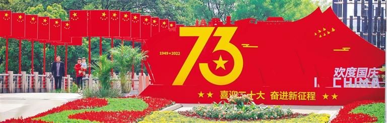 ▲在江苏省淮安市的街头、公园、景区,五星红旗、盛开的鲜花和各式创意景观,将国庆的节日气氛烘托得喜庆热烈。赵启瑞摄(中经视觉)