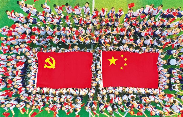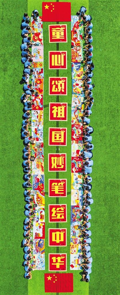 ▶浙江省仙居县第七小学开展“庆国庆·迎盛会”主题活动。师生共同绘制祝福祖国的大型画作,抒发爱党爱国情怀。