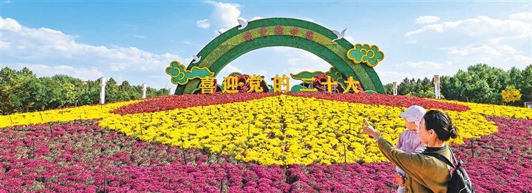 ◀内蒙古自治区鄂尔多斯市康巴什区街头花团锦簇,处处洋溢着节日的喜庆氛围。