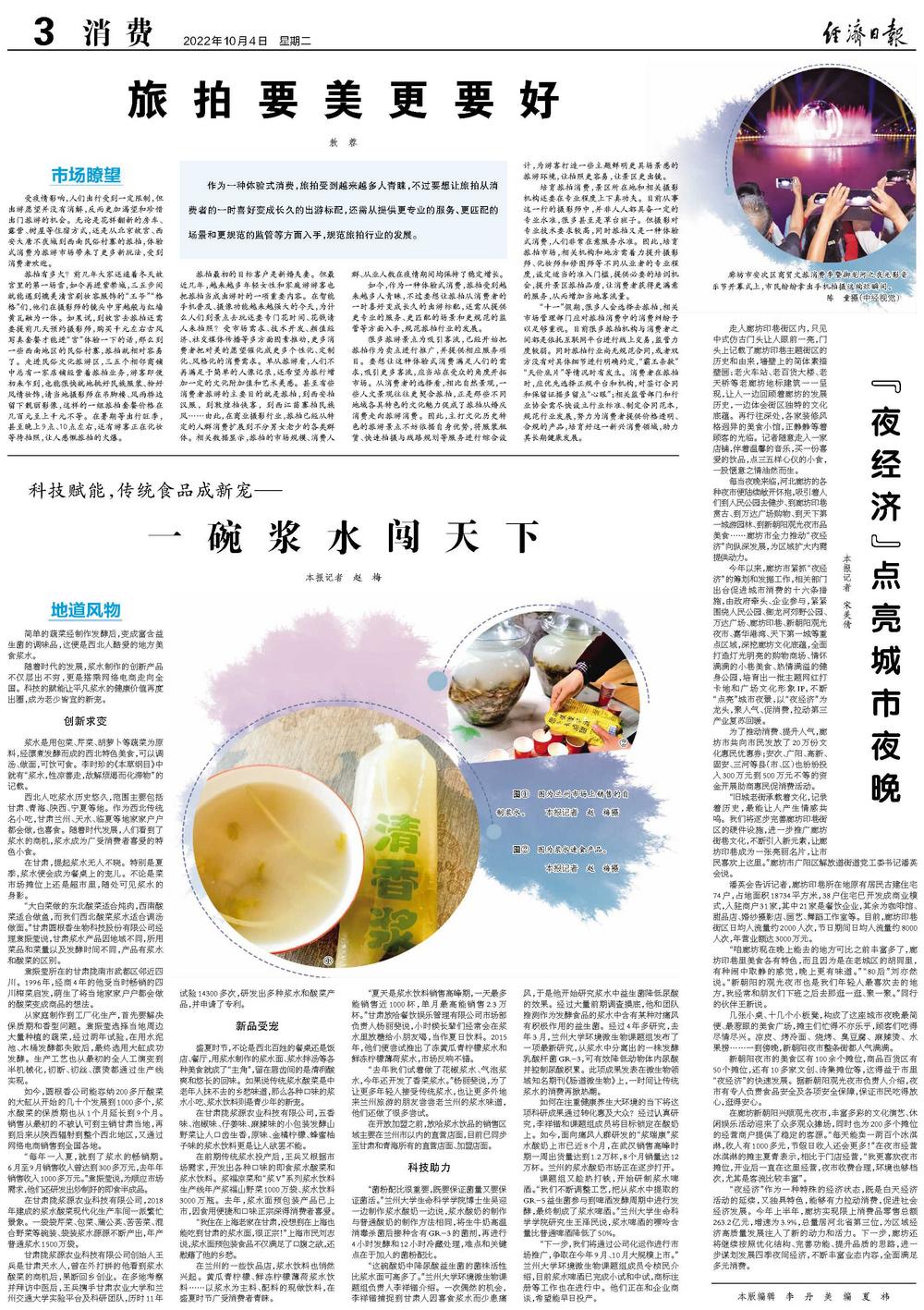 “去年我们试着做了花椒浆水、气泡浆水,今年还开发了香菜浆水。”杨丽斐说,为了让更多年轻人接受传统浆水,也让更多外地来兰州旅游的朋友尝尝老兰州的浆水味道,他们还做了很多尝试。
