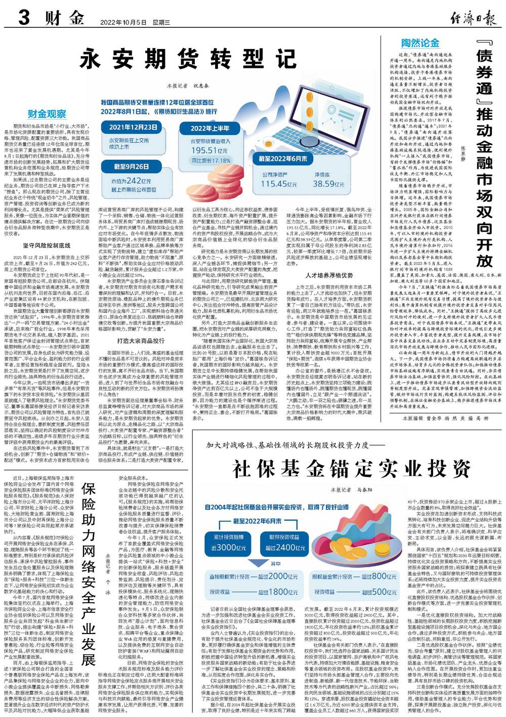 上市之后,永安期货利用资本市场工具的能力上去了,人才流动也加快了,但永安期货胸有成竹。在人才培养方面,永安期货积累了一套自己独有的方法论。“带队伍,永安有经验,两三年就能培养出一茬。”葛国栋表示。永安期货是中国期货市场发展的见证者、参与者、建设者。一直以来,公司围绕中心工作,打造了“期货助力共同富裕红色典范”“稳价保供期现先锋”等特色党建品牌,坚持助力共同富裕,统筹开展专业帮扶、产业帮扶、消费帮扶、教育帮扶和乡村振兴等工作,累计投入帮扶资金超9000万元;首批开展“保险+期货”,连续6年获得中国期货业协会扶贫考核第一名。
