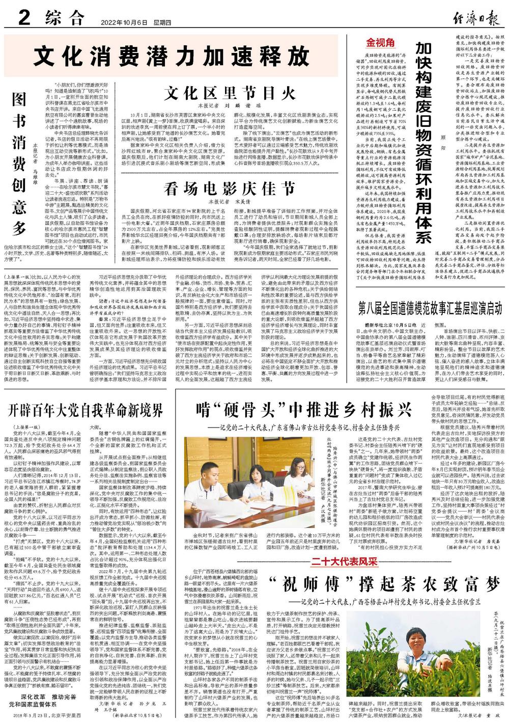 书展、讲座、荐读、朗诵会……在哈尔滨市慧文书院,“喜迎二十大·盛世颂欢歌”系列活动让读者流连忘返。特别是“万物书中游”主题展,甄选出精美的文化图书、文创产品等展示中国传统文化与风土人情,吸引了众多读者。国庆假期,以自助图书馆设备为核心的哈尔滨市惠民工程“智慧图书馆”项目也启动试运行,市民可就近在30个点位借阅图书。家住哈尔滨市松北区的韩女士说,“这个‘智慧图书馆’24小时开放,文学、历史、名著等种类特别多,随借随还,太方便了”。