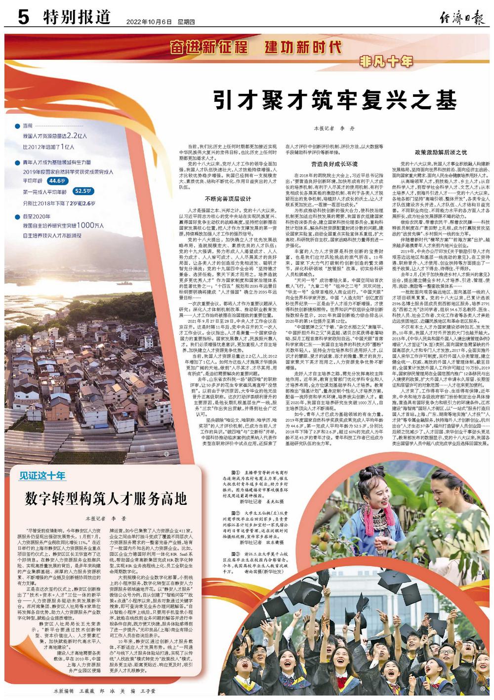 人才是强国之本、兴邦之计。党的十八大以来,以习近平同志为核心的党中央站在实现民族复兴、赢得国际竞争主动权的战略高度,坚持把创新摆在国家发展核心位置,把人才作为支撑发展的第一资源,持续释放加强人才工作的强烈信号。