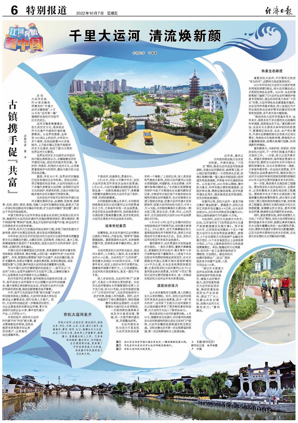 4月28日,历经14天集中补水,京杭大运河实现百年来首次全线水流贯通;6月24日,大运河京冀段旅游航道实现互联互通……在新发展理念指引下,承载着无数繁华盛景的京杭大运河开启了保护、传承、利用的新篇章。