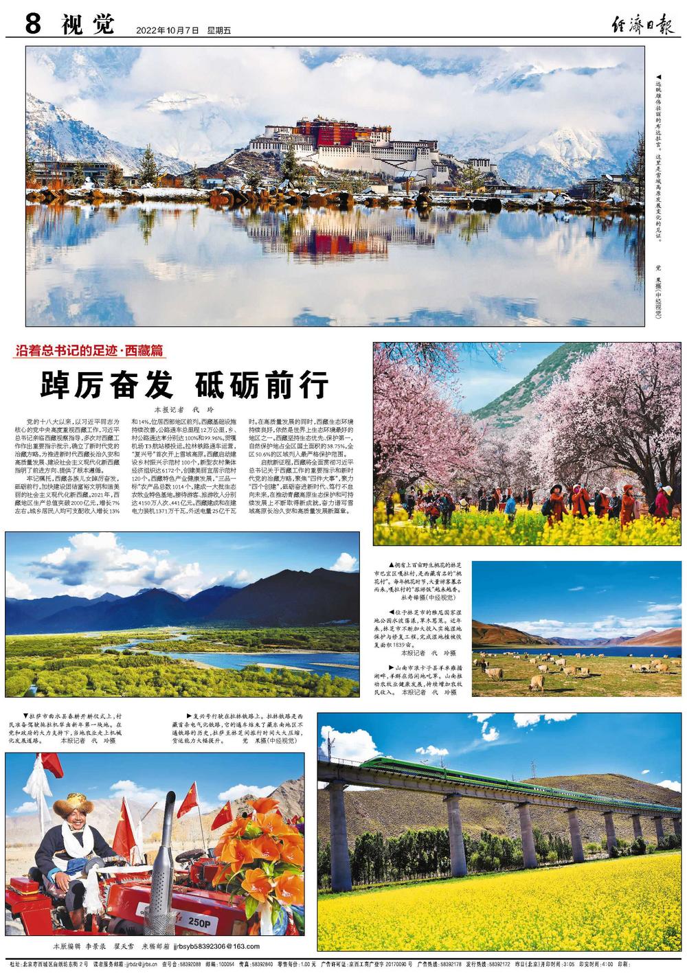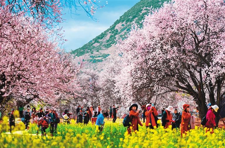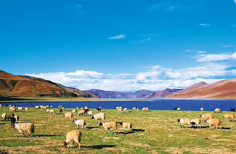 牢记嘱托,西藏各族儿女踔厉奋发,砥砺前行,加快建设团结富裕文明和谐美丽的社会主义现代化新西藏。2021年,西藏地区生产总值突破2000亿元,增长7%左右。城乡居民人均可支配收入增长13%和14%,位居西部地区前列。西藏基础设施持续改善,公路通车总里程12万公里,乡、村公路通达率分别达100%和99.96%。贡嘎机场T3航站楼投运。拉林铁路通车运营,“复兴号”首次开上雪域高原。西藏启动建设乡村振兴示范村100个,新型农村集体经济组织达6172个,创建美丽宜居示范村120个。西藏特色产业健康发展,“三品一标”农产品总数1014个,建成一大批生态农牧业特色基地。接待游客、旅游收入分别达4150万人次、441亿元。西藏建成和在建电力装机1371万千瓦,外送电量25亿千瓦时。在高质量发展的同时,西藏生态环境持续良好,依然是世界上生态环境最好的地区之一。西藏坚持生态优先、保护第一,自然保护地占全区国土面积的38.75%,全区50.6%的区域列入最严格保护范围。
