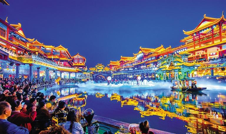 ▼眉山市东坡水街人流如织。眉山是“唐宋八大家”苏洵、苏轼、苏辙“三苏”的故乡,每年吸引着各地游客前来游览参观。盛晓波摄(中经视觉)