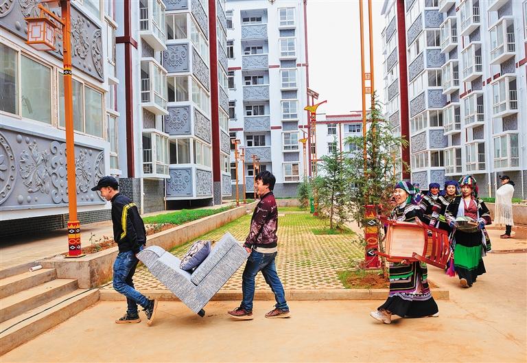 ▶凉山彝族自治州金阳县马依足乡群众喜迁新居。四川举全省之力打赢精准脱贫攻坚战,区域性整体贫困得到解决,绝对贫困全面消除。